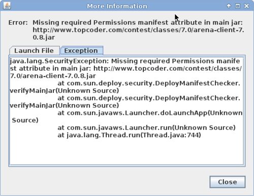 Java 7 Update 51にアップデートして、じゃあTopCoderの過去問でもと思ったら以下のようなエラーが。 ググってみたらJava 7 Update 51 blocks older Network Connect Java appletsという記事が見つかって「The root cause is that Java 7 Update 51 now requ…