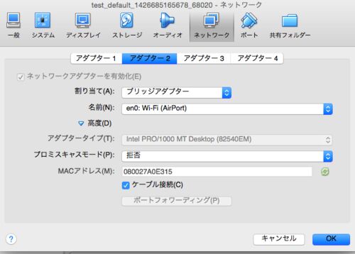 vagrantのconfig.vm.networkでpublic_networkやprivate_networkを設定した場合にVirtualBoxのアダプターはどのようになるのかをメモ。 まず、Vagrantfileでこのように設定する。vagrantを使うときはアダプター1はNatじゃないとダメなようなので2-4を設定。 #…